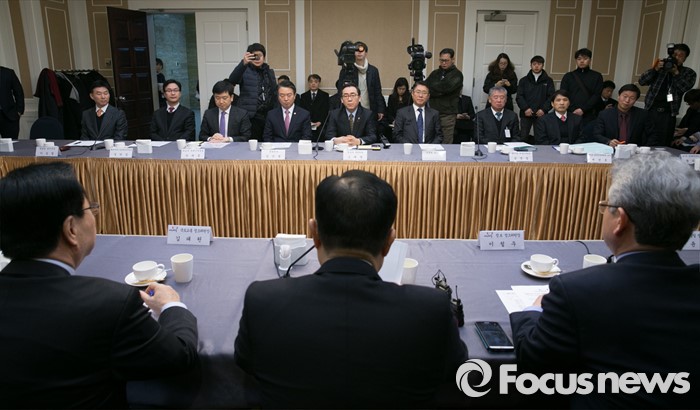(서울=포커스뉴스) 20일 오전 서울 여의도 국회 귀빈식당에서 열린 테러 위기상황 대처를 위한 합동 당정협의에 참석한 김정훈 새누리당 정책위의장이 모두발언을 하고 있다.