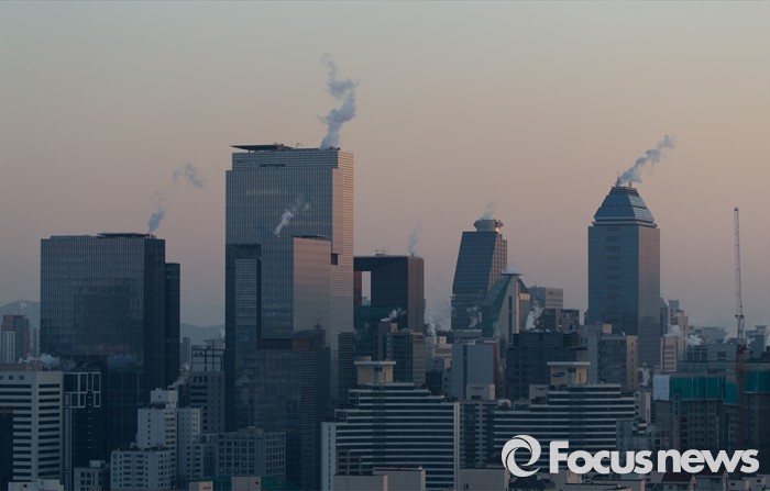(서울=포커스뉴스) 전국이 영하의 강추위를 보이는 20일 오전 서울 서초구 도심의 고층빌딩에서 수증기가 피어오르고 있다.