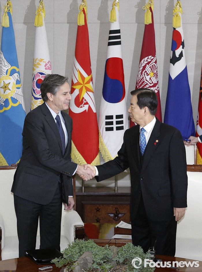 (서울=포커스뉴스) 20일 오전 서울 국방부에서 한민구 장관과 토니 블링큰 미 국무부 부장관이 북한의 제4차 핵실험에 대한 평가와 함께 한·미 양국의 공조 방안 등을 논의하기에 앞서 기념촬영을 하고 있다.