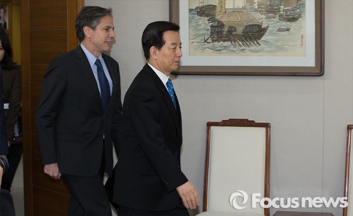 (서울=포커스뉴스) 20일 오전 서울 국방부에서 한민구 장관과 토니 블링큰 미 국무부 부장관이 북한의 제4차 핵실험에 대한 평가와 함께 한·미 양국의 공조 방안 등을 논의하기 위해 자리로 향하고 있다.