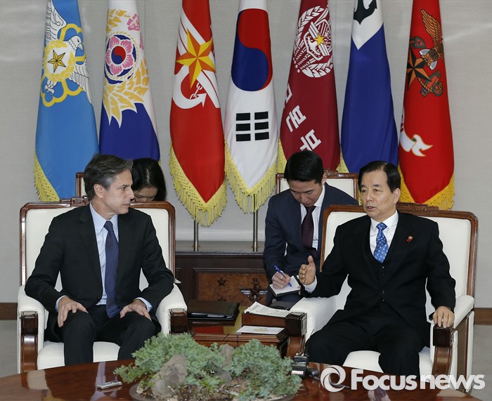 (서울=포커스뉴스) 20일 오전 서울 국방부에서 한민구 장관과 토니 블링큰 미 국무부 부장관이 북한의 제4차 핵실험에 대한 평가와 함께 한·미 양국의 공조 방안 등을 논의하고 있다.