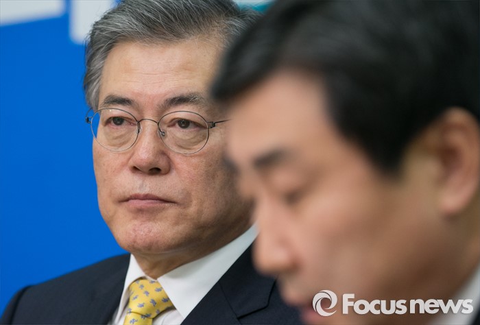 (서울=포커스뉴스) 문재인(왼쪽) 더불어민주당 대표가 20일 오전 서울 여의도 국회에서 열린 최고위원회의에 참석해 이종걸 원내대표의 발언을 듣고 있다.