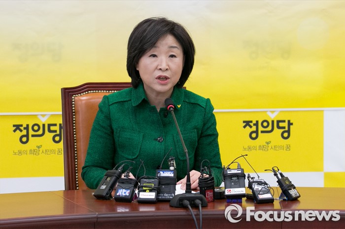 | △ 마이크 앞에 선 심상정 |