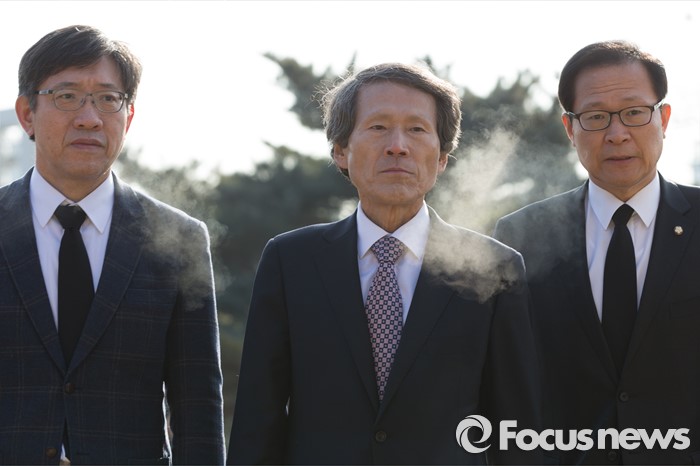 (서울=포커스뉴스) 한상진 국민의당 창당준비위원장이 20일 오전 서울 용산구 백범 김구 선생 묘역에 참배하기 위해 걸어오고 있다.