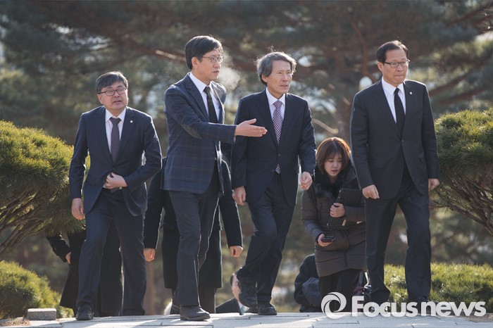 (서울=포커스뉴스) 한상진 국민의당 창당준비위원장이 20일 오전 서울 용산구 백범 김구 선생 묘역에 참배하기 위해 걸어오고 있다.