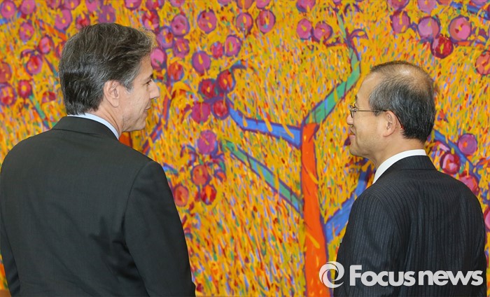 (서울=포커스뉴스) 북한의 4차 핵실험에 대한 한미 공조 방안을 논의하기 위해 방한한 토니 블링큰 미국 국무부 부장관이 20일 오전 서울 종로구 외교부에서 임성남 외교1차관과 이야기를 나누고 있다.