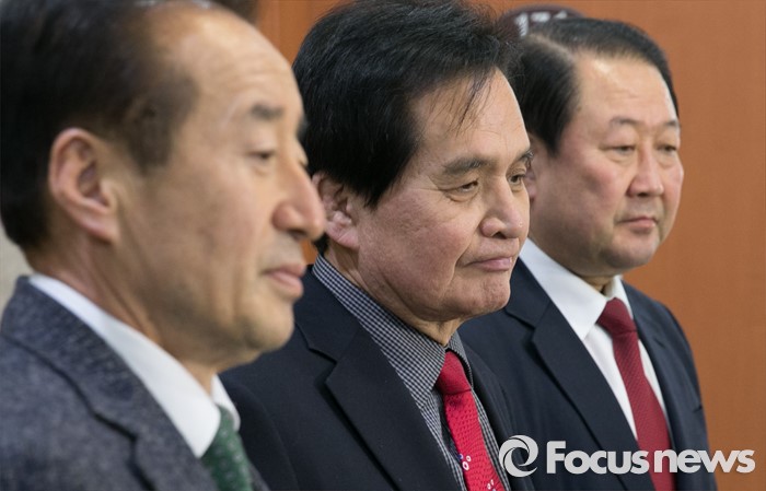 (서울=포커스뉴스) 20일 오후 서울 여의도 국회 정론관에서 유선호(왼쪽), 장세환(가운데) 전 의원이 박주선 무소속 의원이 창당준비 중인 통합신당 합류 기자회견을 마친 뒤 취재진 질문에 답하고 있다.