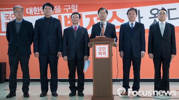(서울=포커스뉴스) 국민회의 천정배 창당준비위원장이 20일 오후 서울 여의도 국민회의 당사에서 열린 인재 입당식에서 통일/노동 분야 5명의 인사들을 소개하고 있다. 왼쪽부터 노동 분야 정광호 당원(전 한국노총 사무청장), 지재식 당원(전 IT연맹 위원장), 김명원 월드에너지 상무이사, 천정배 위원장, 통일 분야 도천수 당원(희망시민연대 공동대표), 전현준 당원(동북아평화협력연구원장)
