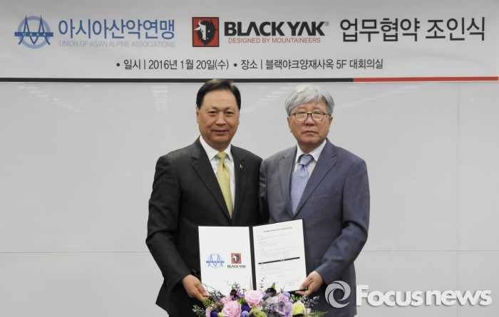 블랙야크는 서울 양재사옥에서 아시아산악연맹과 이같은 내용의 업무협약(MOU)을 체결했다고 20일 밝혔다.