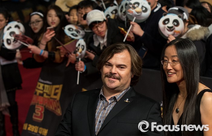 (서울=포커스뉴스) 할리우드 애니메이션 '쿵푸팬더 3' 홍보차 내한한 배우 잭 블랙과 여인영 감독이 20일 오후 서울 영등포구 타임스퀘어에서 열린 레드카펫 행사에 참석하고 있다.