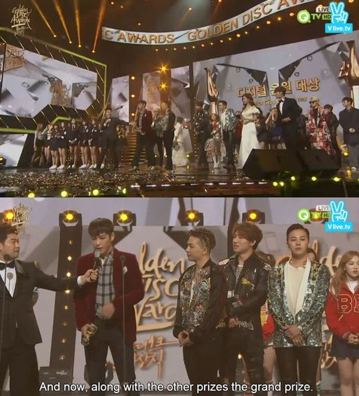 20일 오후 서울 회기동 경희대학교 평화의전당에서 열린 ‘제 30회 골든디스크 시상식’에서 빅뱅은 디지털 음원부문 대상의 영예를 안았다. 이외에도 아이치이 남자 아티스트 인기상과 디지털 음원 본상까지 수상하며 3관왕의 기쁨을 누렸다.