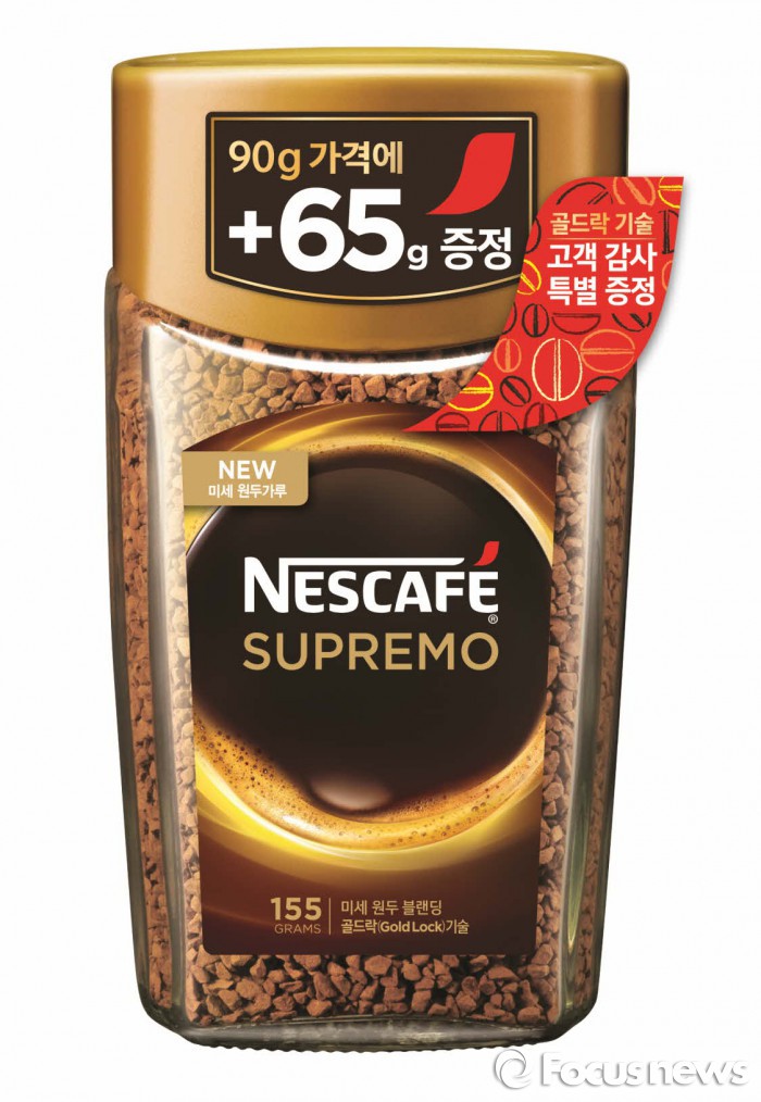 (서울=포커스뉴스) 롯데네슬레코리아는 ‘네스카페 수프리모’를 155g의 대용량으로 구성한 ‘네스카페 수프리모 점보 에디션’을 21일 한정수량 출시했다.