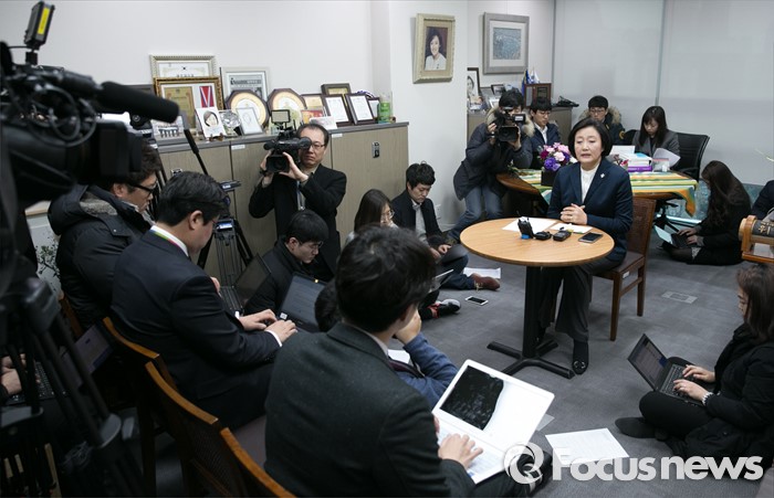 (서울=포커스뉴스) 당 잔류를 공식 선언한 박영선 더불어민주당 의원이 21일 오전 서울 여의도 국회 의원회관 의원실에서 기자간담회를 하고 있다.