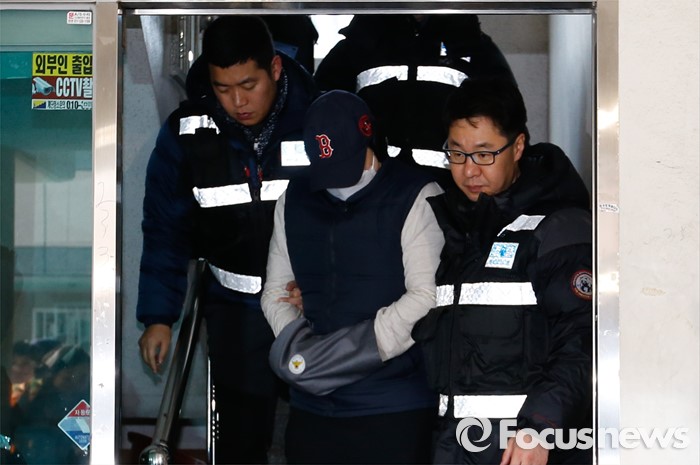 (부천=포커스뉴스) 부천 초등생 살해사건의 2차 현장검증이 실시된 21일 오전 피의자의 전 거주지로 알려진 부천 원미구 한 빌라에서 피의자 최모 (33)씨가 범행 상황 재연 후 나서고 있다.