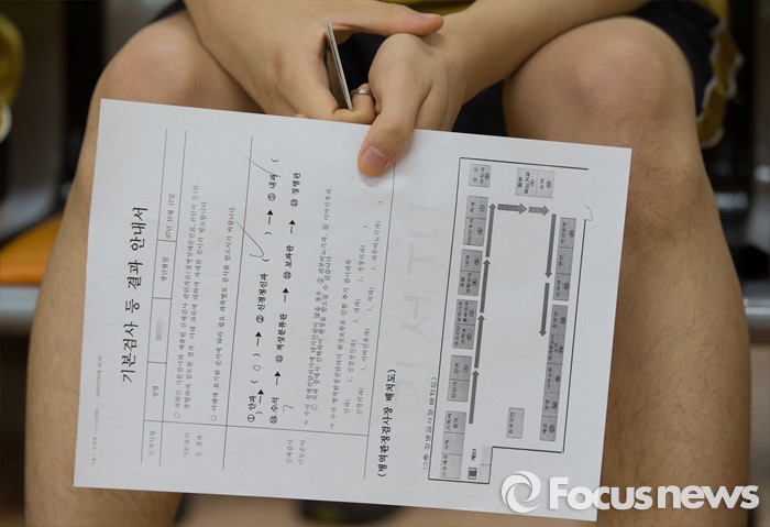 (서울=포커스뉴스) 2016년 첫 징병검사가 실시된 21일 오전 서울 영등포구 서울지방병무청에서 한 징병대상자가 자신의 검사 순서를 기다리고 있다.