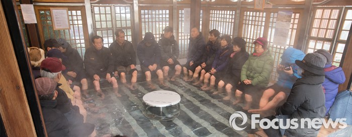(대전=포커스뉴스) 절기상 대한인 21일 오전 대전 유성구 족욕체험장에서 영하의 강추위에도 불구하고 시민들이 온천수에 발을 담그고 몸을 녹이고 있다.