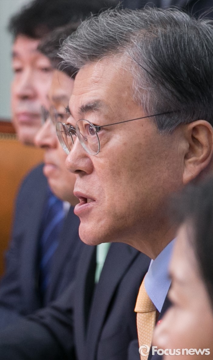 (서울=포커스뉴스) 21일 오전 서울 여의도 국회에서 열린 더불어민주당 뉴파티특별위원회 출범 회의에 참석한 문재인 대표가 인사말을 하고 있다.