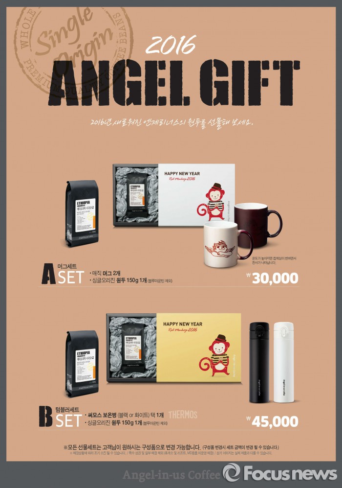 (서울=포커스뉴스) 엔제리너스커피는 설을 앞두고 프리미엄 싱글오리진 원두와 MD용품으로 구성된 ‘설 선물세트 2종’를 출시하고 오는 2월10일까지 판매한다.