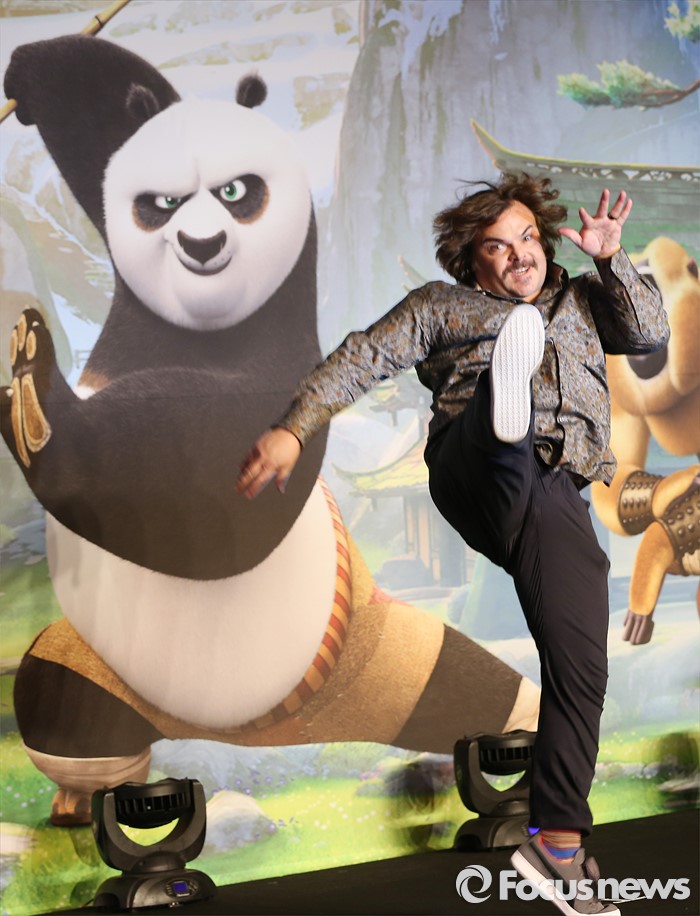 (서울=포커스뉴스) 배를 내밀며 느릿느릿한 걸음으로 등장했다. 취재진 앞에서 재빠르게 동작을 바꿨다. 발차기한 뒤에는 두 손을 모아 인사했다. 잭 블랙은 애니메이션 '쿵푸팬더3'의 주인공 포 그 자체의 모습이었다.