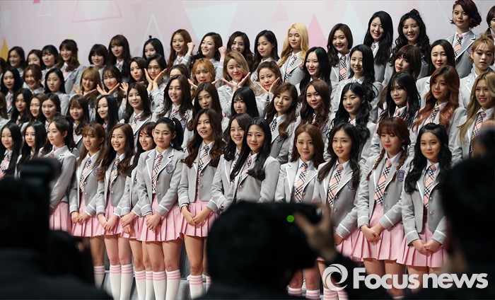 (서울=포커스뉴스) 21일 오후 서울 영등포구 63스퀘어에서 열린 Mnet '프로듀스 101' 제작발표회에 참가 연습생들이 포토타임을 갖고 있다.
