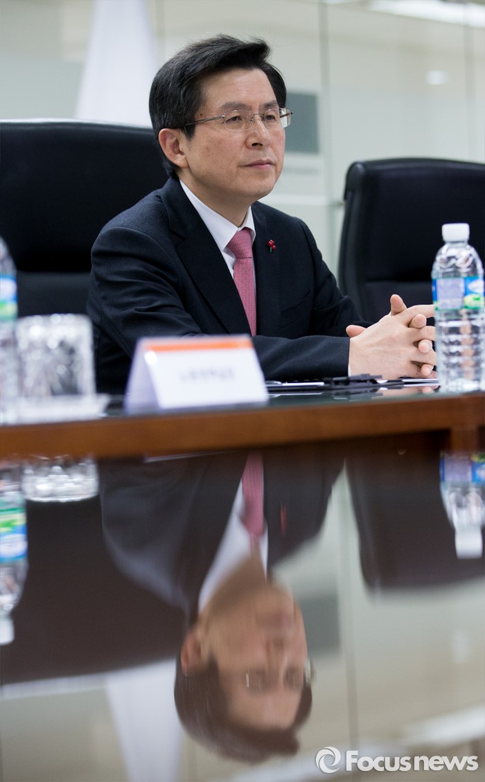 (서울=포커스뉴스) 21일 오후 서울 중구 한화 본사를 방문한 황교안 국무총리가 노동개혁과 관련해 현장 노사와의 대화 시간을 갖고 있다.