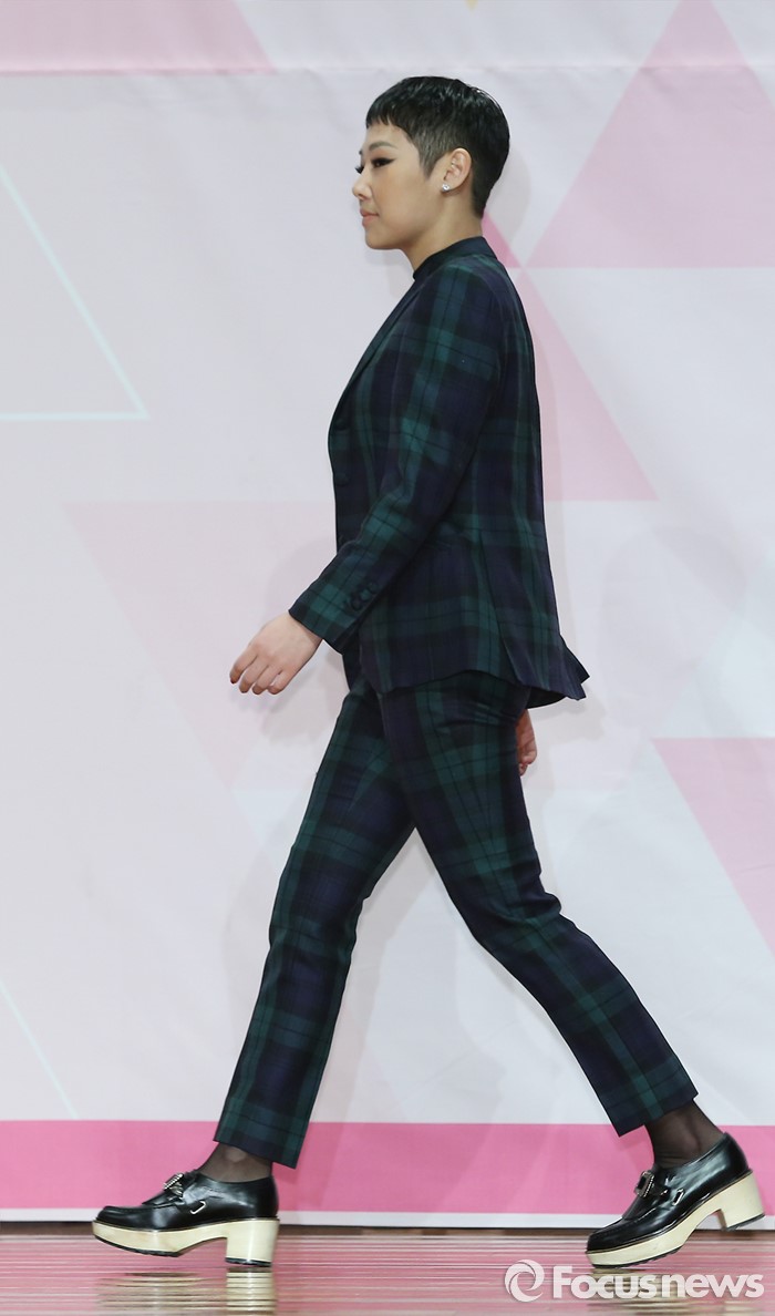 (서울=포커스뉴스) 21일 오후 서울 영등포구 63스퀘어에서 열린 Mnet '프로듀스 101' 제작발표회에 참석한 래퍼 치타가 포토타임을 위해 이동하고 있다.