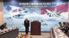 (사천=포커스뉴스) 방위사업청은 21일 오전 경남 사천시 한국항공우주산업(KAI) 항공기개발센터에서 한국형전투기(KF-X) 체계개발사업 착수회의를 개최하고 향후 10년 6개월에 걸친 체계개발의 여정을 시작했다.