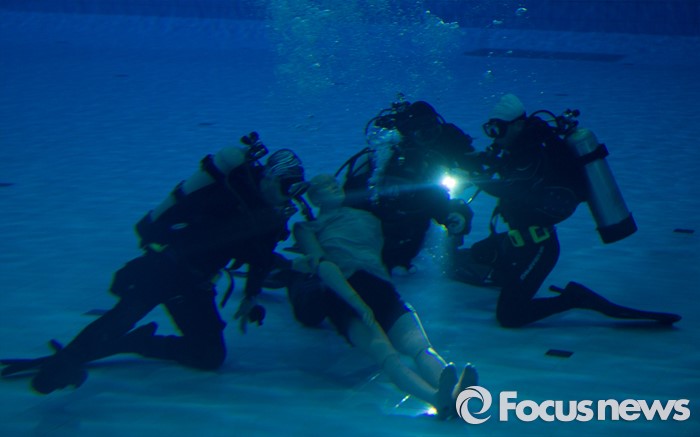 (대전=포커스뉴스) 21일 오후 대전 동구 용운국제수영장에서 충북 영동소방서 구조대원들이 동계 수난사고 인명구조훈련을 실시하고 있다.