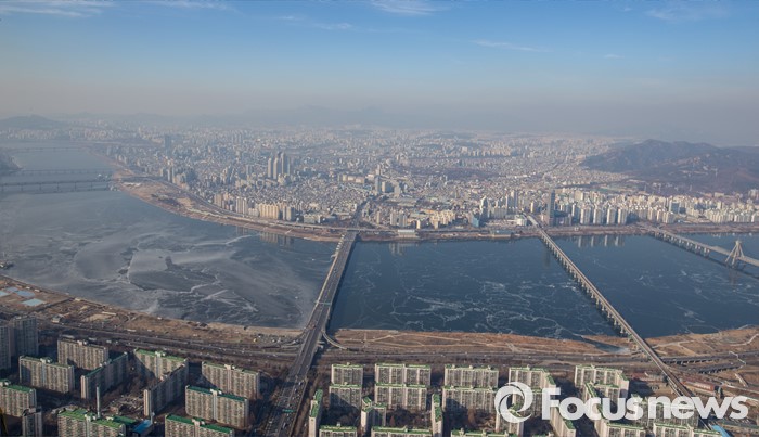 (서울=포커스뉴스) 서울 기온이 영하권에 머무르며 연일 강추위가 이어지고 있는 21일 오후 서울 한강이 얼어 있다.