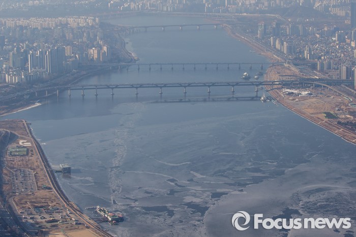 (서울=포커스뉴스) 서울 기온이 영하권에 머무르며 연일 강추위가 이어지고 있는 21일 오후 서울 한강이 얼어 있다.