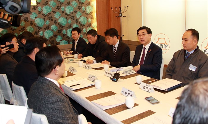 (인천=포커스뉴스) 이기권 고용노동부 장관이 21일 오전 인천 남동구 소재 식당에서 인천지역 노사간담회를 갖고, 노동개혁 관련 2대 지침에 대한 상세한 설명과 다양한 의견을 수렴하고 있다. <사진제공=고용노동부>