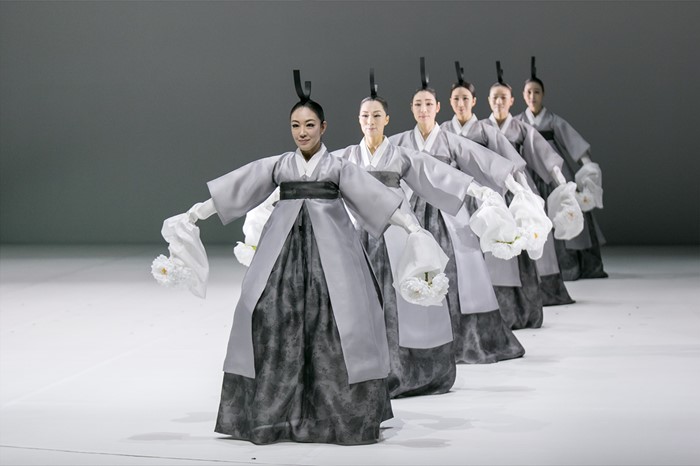 (서울=포커스뉴스) 20일 중국 베이징 21세기극장에서 열린 2016년 한국관광의 해 개막행사에서 정구호 감독이 한국의 전통 춤을 현대적 감각으로 재창조한 국립무용단의 ‘향연(饗宴)’ 공연이 펼쳐지고 있다. <사진제공=문화체육관광부>