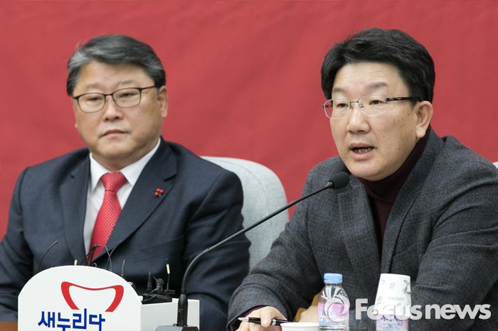 (서울=포커스뉴스) 권성동(오른쪽) 새누리당 전략기획본부장이 22일 오전 서울 여의도 국회에서 열린 원내대책회의에 참석해 발언하고 있다.