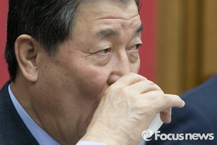 (서울=포커스뉴스) 새누리당 총선기획단장인 황진하 사무총장이 22일 오전 서울 여의도 국회에서 열린 원내대책회의에 참석해 물을 마시고 있다.