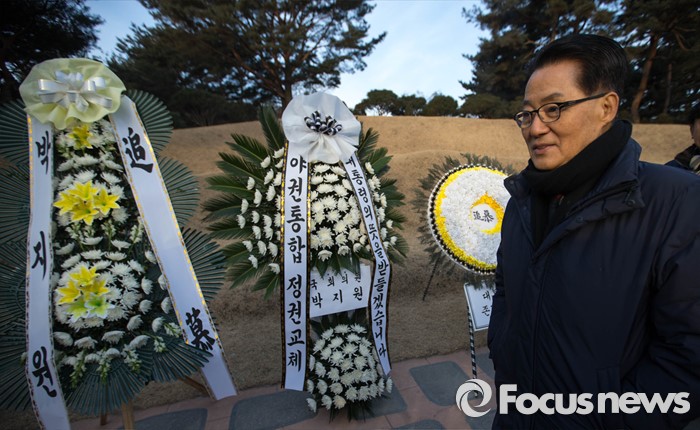 | △ 참배 끝낸 박지원 전 원내대표 |