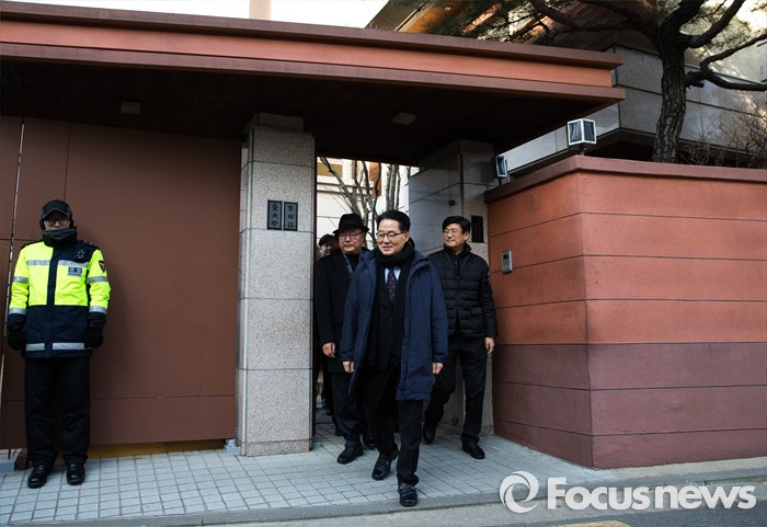 (서울=포커스뉴스) 더불어민주당 탈당을 예고한 박지원 전 원내대표가 22일 오전 서울 동교동 故 김대중 전 대통령의 사저를 찾아 이희호 여사를 예방하고 사저에서 나오고 있다.