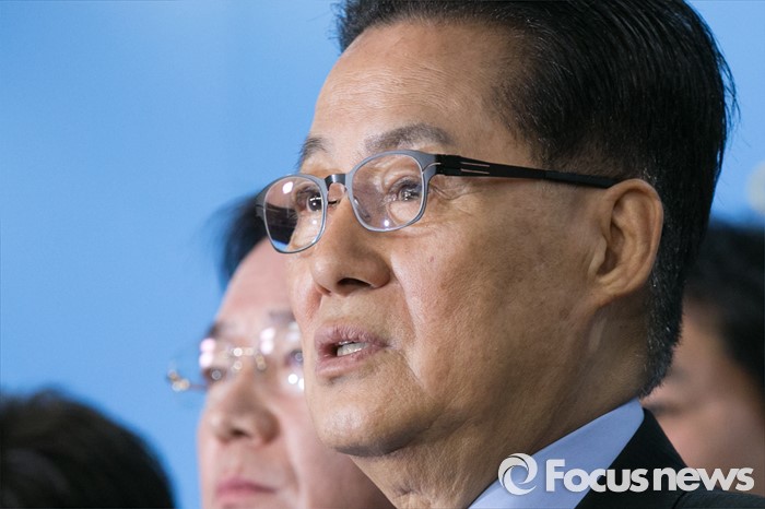 (서울=포커스뉴스) 박지원 더불어민주당 의원이 22일 오전 서울 여의도 국회 정론관에서 탈당을 표명하는 기자회견을 하고 있다.