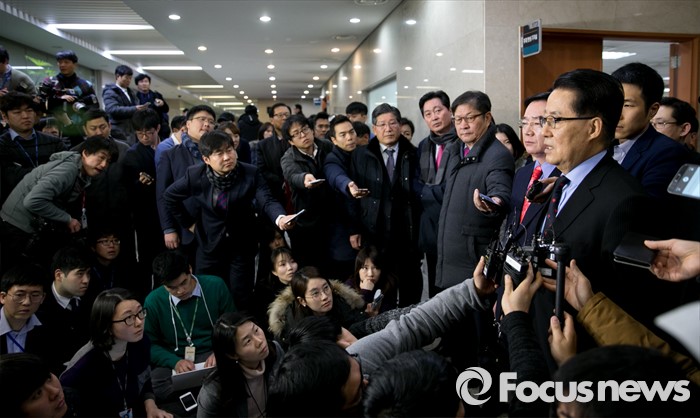 (서울=포커스뉴스) 박지원 더불어민주당 의원이 22일 오전 서울 여의도 국회 정론관에서 탈당 기자회견을 마친 뒤 취재진 질문에 답하고 있다.