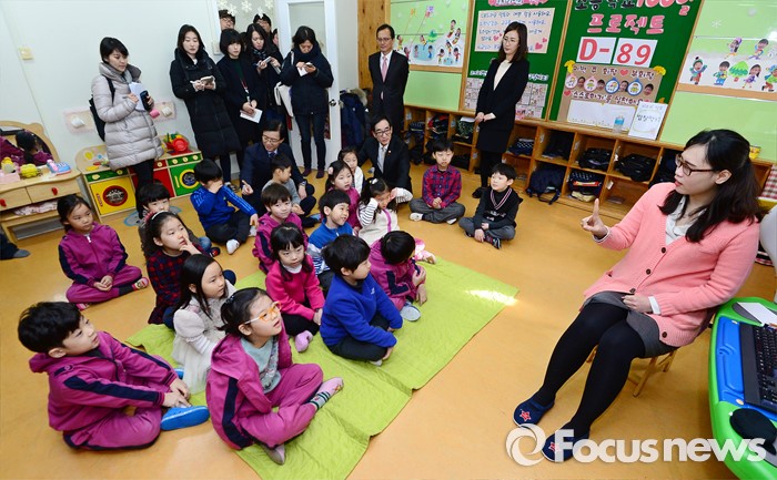 (서울=포커스뉴스) 이준식 사회부총리 겸 교육부장관이 22일 오전 서울 용산구 일민유치원을 찾아 학부모, 보육 관계자 등과 간담회를 열기 전 수업을 참관하고 있다.