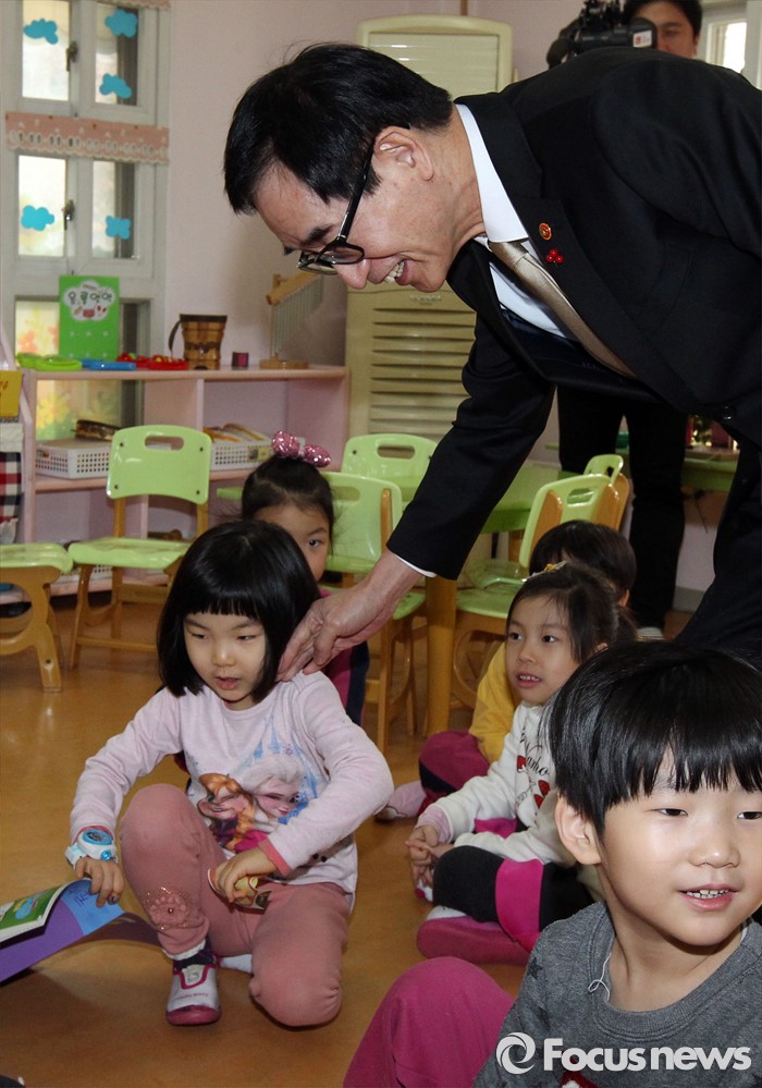 (서울=포커스뉴스) 이준식 사회부총리 겸 교육부장관이 22일 오전 서울 용산구 일민유치원을 찾아 학부모, 보육 관계자 등과 간담회를 열기 전 수업 참관 후 아이들과 인사하고 있다.
