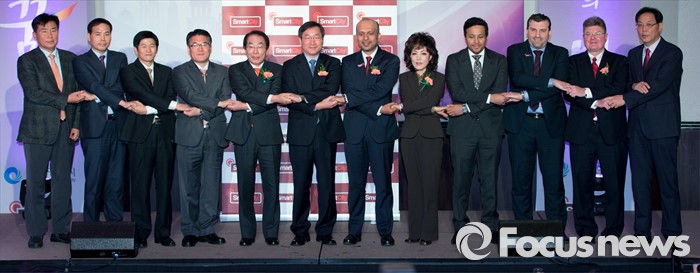 (인천=포커스뉴스) 22일 오후 인천 연수구 쉐라톤인천호텔에서 열린 검단 스마트시티 MOA 체결식에서 유정복(왼쪽 여섯번째부터) 인천시장과 자버 빈 하페즈 두바이 스마트시티 CEO가 주요내빈들과 기념촬영을 하고 있다.