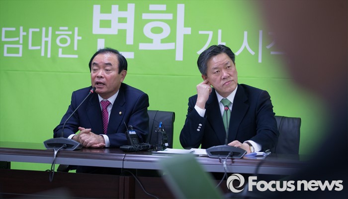 (서울=포커스뉴스)장병완 국민의당(가칭) 창당준비위원회 정책위원장과 주승용 원내대표(오른쪽)가 22일 오전 서울 마포구 국민의당 당사에서 기자간담회을 하고 있다.