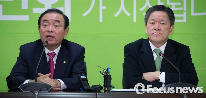 (서울=포커스뉴스)장병완 국민의당(가칭) 창당준비위원회 정책위원장과 주승용 원내대표(오른쪽)가 22일 오전 서울 마포구 국민의당 당사에서 기자간담회을 하고 있다.