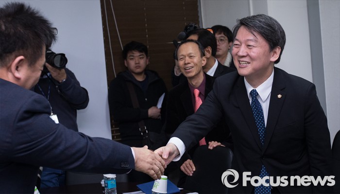 (서울=포커스뉴스) 국민의당(가칭) 안철수 의원이 22일 오후 서울 구로구 한국상용 SW협회에서 열린 SW전문기업인들과의 간담회에서 기업인들과 인사를 나누고 있다.