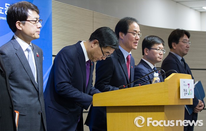 (세종=포커스뉴스) 이기권 고용노동부장관이 22일 오후 세종시 정부세종청사 보건복지부 브리핑룸에서 '일반 해고' 및 '취업규칙 변경요건 완화' 등 양대 지침에 대한 최종안 발표를 마치고 인사를 하고 있다.