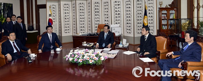 | △ 국회의장 주재 회동 참석한 여야 원내지도부 |
