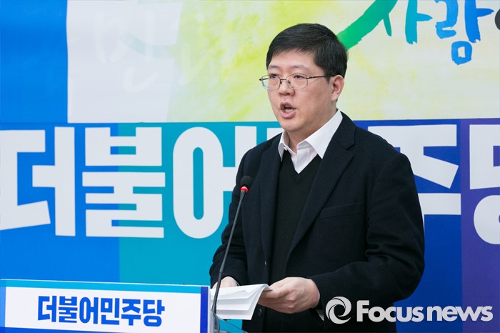 (서울=포커스뉴스) 김대중 전 대통령의 삼남 김홍걸 연세대 김대중 도서관 객원교수가 24일 오전 서울 여의도 국회 더불어민주당 당대표실에서 입당 기자회견을 하고 있다.