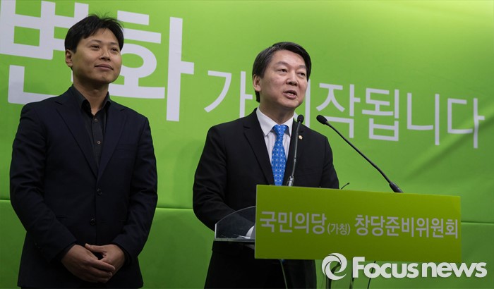 (서울=포커스뉴스) 24일 오전 서울 마포구 국민의당 당사에서 안철수(오른쪽) 인재영입위원장이 곽선우 변호사의 국민의당 합류를 발표하고 있다.