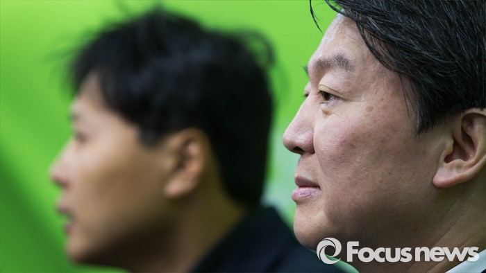 (서울=포커스뉴스) 24일 오전 서울 마포구 국민의당 당사에서 안철수(오른쪽) 인재영입위원장이 새로 입당한 곽선우 변호사의 발언을 경청하고 있다.