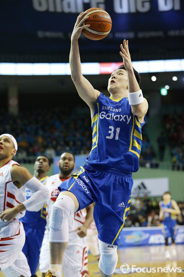 (서울=포커스뉴스) 24일 서울 잠실실내체육관에서 열린 2015-2016 프로농구 삼성-오리온 경기에서 삼성 김준일이 노마크 찬스에서 레이업슛을 시도하고 있다.